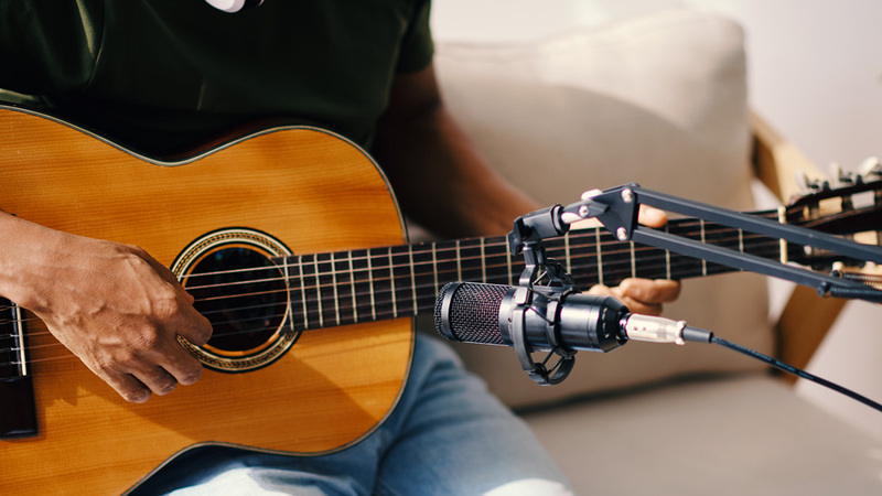 Several factors come into play when selecting a microphone for recording acoustic guitar, including microphone type, frequency response, diaphragm size and polar pattern.