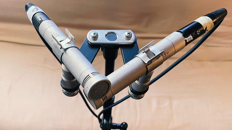 This next technique requires two identical mics; ideally a matched pair of small-diaphragm condensers, as these can be positioned more precisely. You’ll also need two mic stands or a stereo bar to get both into the appropriate position.