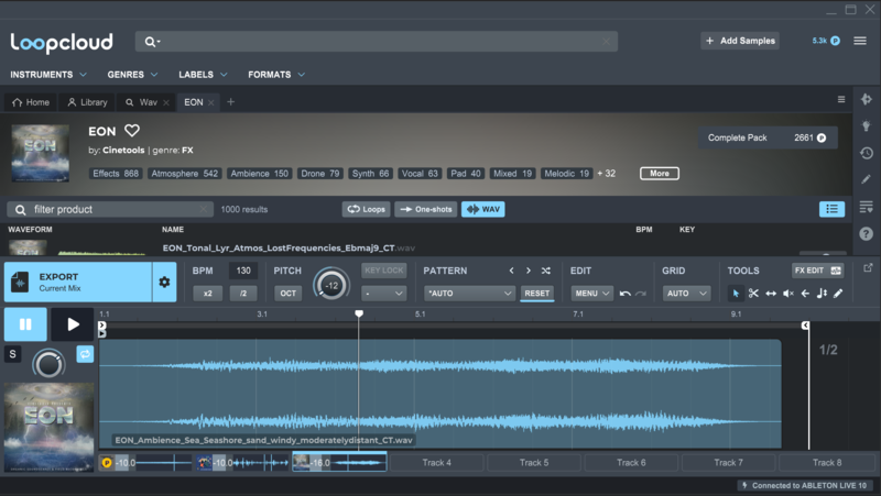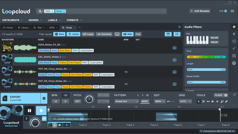 Where you choose to find the sounds for your textural layers is up to you, and with Loopcloud’s extensive catalogue of over 4 million sounds you won’t find it hard to find what you’re looking for. Use the search filters to hone on a sound, and if it’s not quite right, use a section of it by splitting the clip or changing the loop length.