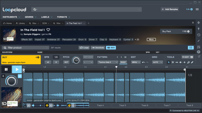 As well as static sound layers that add depth and character to a sound, you can also create atonal rhythmic textures that can slot in behind your drums. This is a useful technique for transforming bland beats and filling in space in the mix, and it can be achieved very easily using Loopcloud’s Pattern presets.