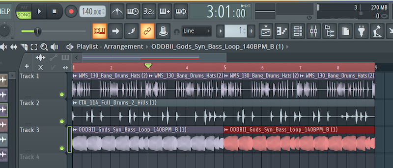 After auditioning a few samples the loop ‘ODDBII Gods Syn Bass Loop 140BPM B’ sounds the best. Let’s purchase it and drag it into our arrangement.