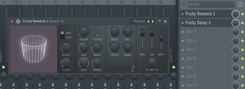 First, we’ll reach for FL Studio’s stock reverb plugin Fruity Reeverb 2.