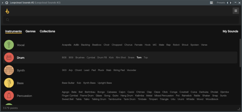 Now let’s finish off the beat with a melody element. Once again, open Loopcloud Sounds. Our melody could be on a whole range of instruments. On the homepage of the Loopcloud Sounds plugin we are presented with a long list of instrument options to choose from.
