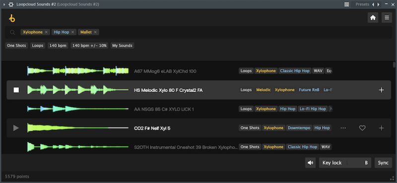 Having found a few samples that work, let’s widen our search again. Let’s mix the instrument up and search for a xylophone Hip Hop sample.