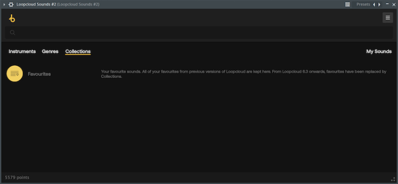 To find the favourites folder go to the home screen of Loopcloud Sounds, click the Collections tab and then open the Favourites folder.