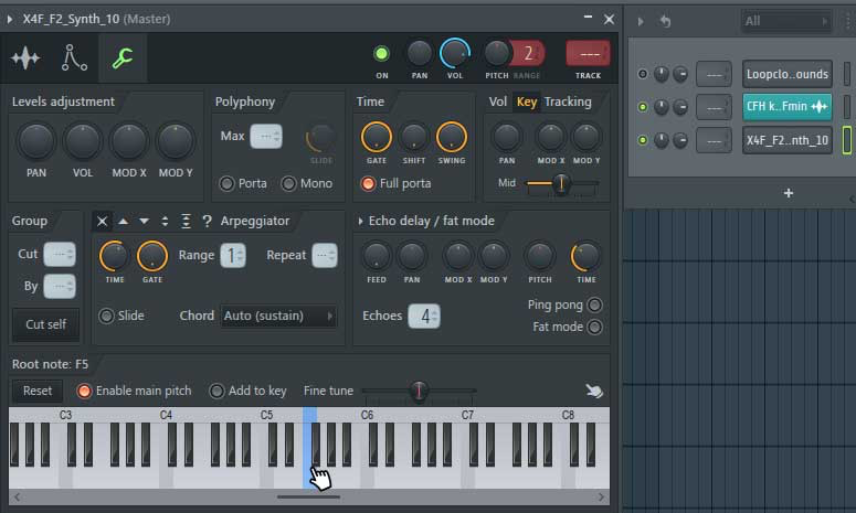 Our sample is in the key of F, so we want to map it to F within the sampler.
