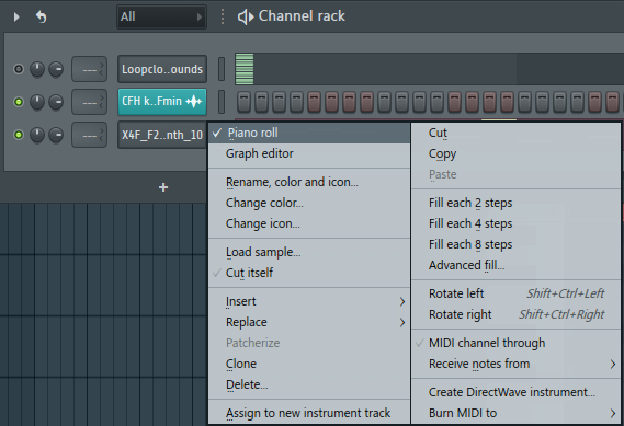 Now we’re ready to construct a melody using our synth one-shot. Open up the sample within FL Studio’s Piano Roll. To do this, right-click on the sample within the Channel Rack and click ‘Piano Roll’.