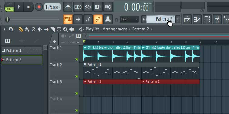 Then, using the Paint or Draw tool, paint a couple of four-bar instances of that pattern into the Playlist panel so that we’ll be able to preview our new kick pattern alongside our current composition. Check out the screenshot below for reference.