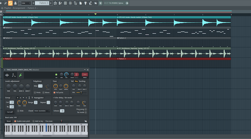 As you can see from the above screenshot, we’ve created a new pattern for our bass and also mapped our bass to the sample’s corresponding key (F#) in the sampler.
