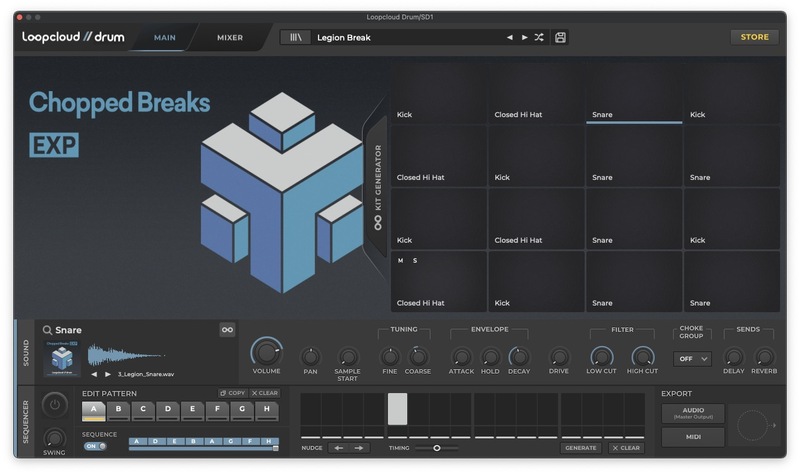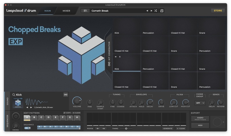 First up is the punchy mid-range kick, which comes from Loopcloud Drum. More specifically, we’re using one of the kicks from the Cometh Break preset, which is part of Loopcloud’s Chopped Break EXP pack.