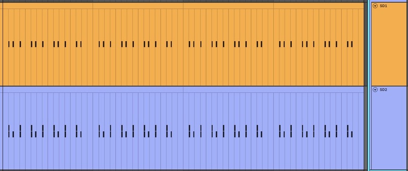 The kick is programmed in a minimalistic UK Garage kick pattern and consists of a clicky midrange layer to provide punch and presence. This is layered with a sustained 808-style kick with a pitch drop, which is the primary source of sub-bass for the entirety of the song.