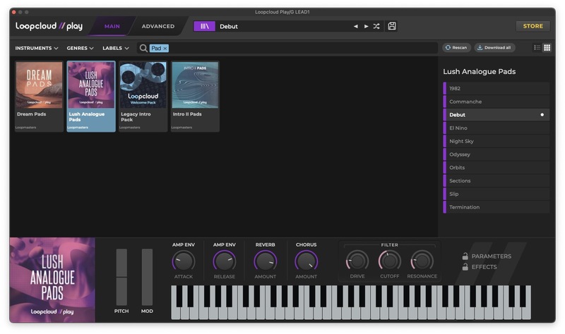 With a huge range of presets and a simple interface, Loopcloud Play makes it quick and simple to get your ideas out of your head and into your DAW. Using the Synth Pad tags in the browser, it didn’t take long to find the perfect pad sound.