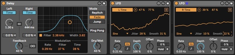 This is helped along by modulating reverbs and delays to add additional space, and an Auto Pan device that gradually moves the noise around the stereo field.