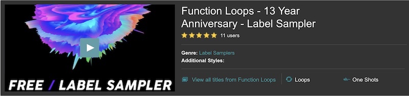 First, we have the 13th Year Anniversary, celebratory pack by Function Loops. Function Loops have published a wide catalog of samples over their extensive lifespan as a label, and now, you can get your hands on some of their fine contributions completely free! These 107 samples have been plucked from across their catalog into a compilation bundle, giving you access to many different sample types (predominantly drums–including loops).
