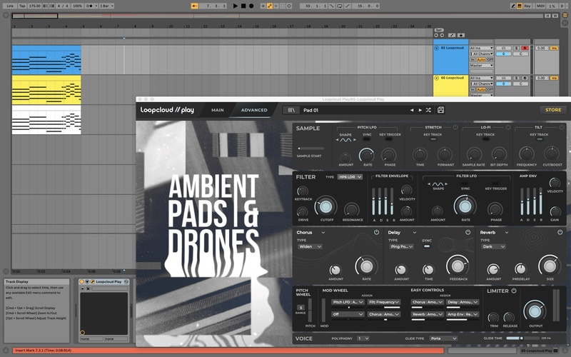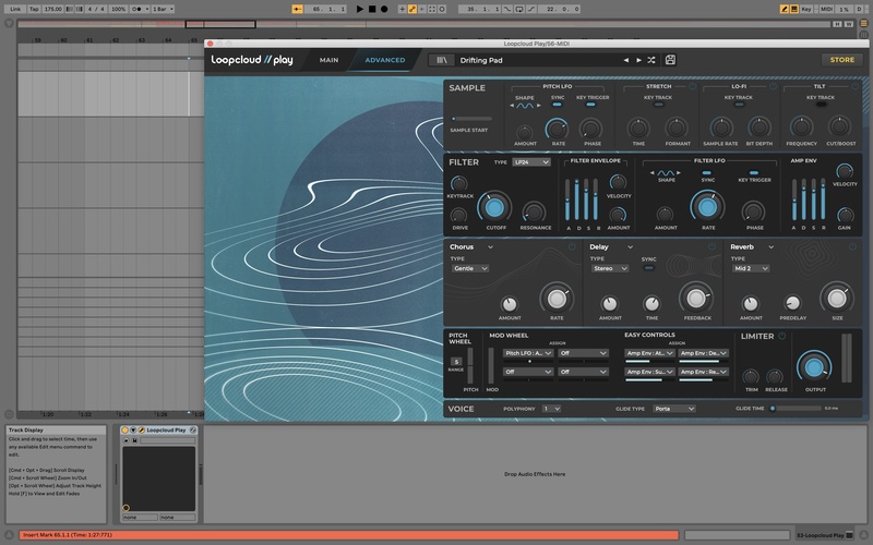 4. The Loopcloud PLAY sounds are designed by professional sound designers, so you could use an evolving type pad straight out of the box. But to make them more your own you can automate multiple parameters within the VST to slowly change over time; the filter cutoff, LFO’s, and more, will give you a nice bubbling, undulating, and often changing bed, automated to your own taste, making a strong starting point for a track.